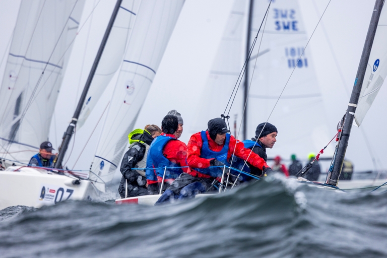Apotea J/70 European Championship i Sandhamn bjöd idag på helt nya utmaningar. Efter flera dagar med lättare vindar möttes seglarna nu av hög sjö och vindar på upp emot 10 m/s. De krävande förhållandena skakade om resultatlistan – och efter åtta seglingar ligger ett svenskt team på bronsplats i Europamästerskapet, då endast två icke-europeiska lag återfinns framför.
