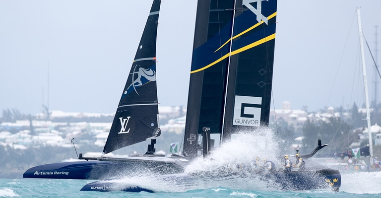Hård vind skapade dramatiska semifinaler på Bermuda under tisdagen. En båtskada och tekniska problem gjorde att Artemis Racings förlorade två poäng till Softbank Team Japan.