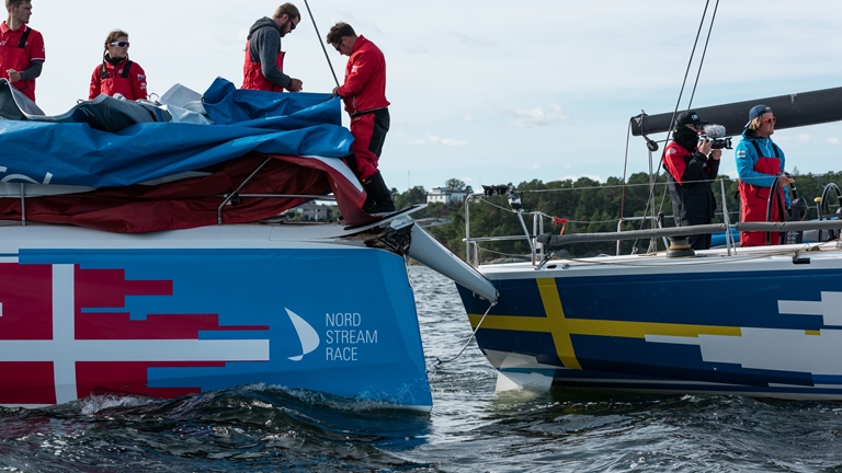 De fem båtarna i Nord Stream Race skulle precis starta den tredje etappen från Baggensfjärden i Saltsjöbaden till Helsingfors. Det blåste runt sex-sju m/s och båtarna letade bra startpositioner när danskarna körde in i den svenska båten snett bakifrån. KSSS-båten fick ett hål i skrovet i aktern cirka en meter ovanför vattenlinjen, medan danskarna bland annat skadade sitt bogspröt som gick in i den svenska båten.
