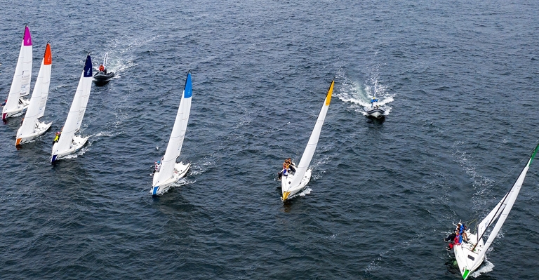• Skarpa Sprint SM seglas i sex identiska J/70 båtar som lottas till besättningarna.
