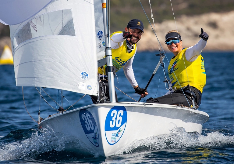 Anton Dahlberg/Lovisa Karlsson seglade på söndagen hem ett EM-guld i 470 Mixed. I tuffa vindar och strålande solsken gjorde de ett taktiskt sista race där de höll koll på den spanska båten som var enda hotet mot svenskarna.