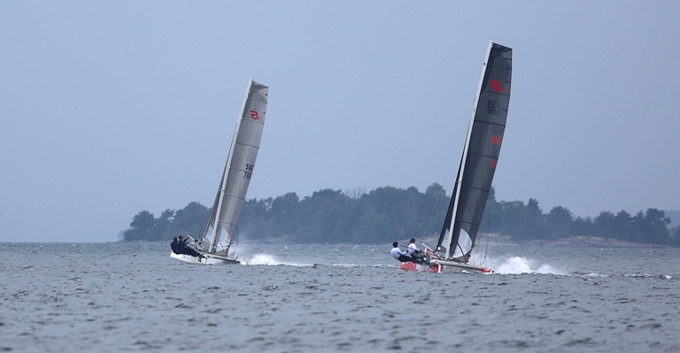 t var otroligt jämt i toppen men Jakob Lundqvist och Rasmus Rosengren tog tidigt ledningen och det belgiska teamet Patrick Demesmaeker och Olivier Gagliani låg längre ned i fältet. Belgarna har dock en unik förmåga att arbeta sig upp genom fältet och seglade oerhört stabilt i den hårda vinden. Vinden var byig och pendlade mellan 10 och 14 sekundmeter, trots detta var det få kappsejsningar och inga större haverier.