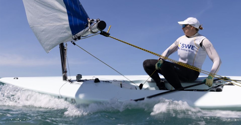 – Jag gjorde en väldigt bra start idag, vilket är fokus för regattan. Men jag seglade inte helt rätt på kryssarna utan hamnade lite ur fas med vindskiften, säger Josefin.