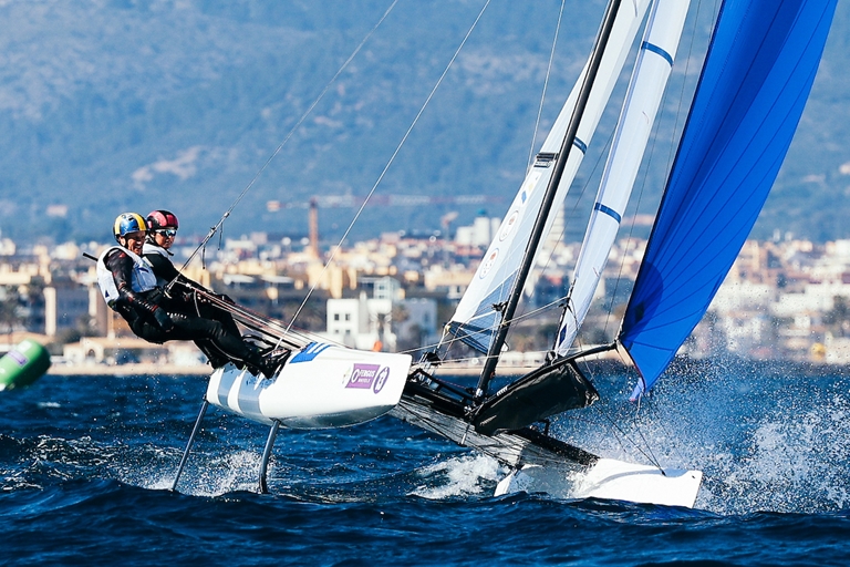 Det svenska teamet fick en mycket bra start i Palma. Framför allt i Nacraklassen där Emil Järudd/Hanna Jonsson leder före Ida Svensson/Marcus Dackhammar. I princip hela världseliten i Nacra är på plats och till en början är de 42 besättningarna uppdelade i två grupper med 21 båtar i varje. I ena gruppen vann Emil och Hanna två av dagens tre race. Och de var tvåa i det tredje.