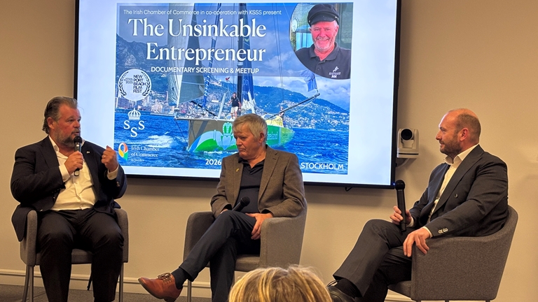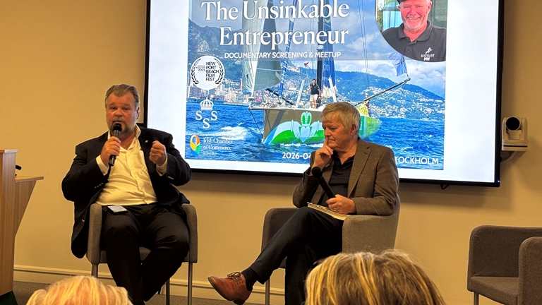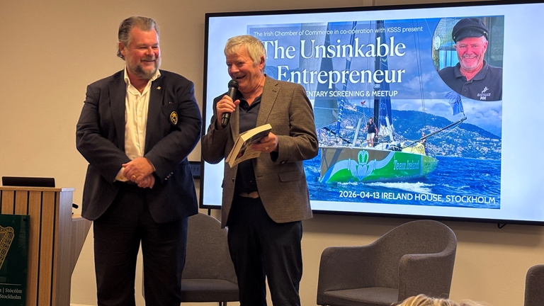 När KSSS tillsammans med Irish Chamber of Commerce in Sweden bjöd in till medlemskväll stod den irländske seglaren Enda O’Coineen i centrum. Närmare 60 deltagare samlades för en kväll fylld av dramatik, humor och starka berättelser från världshaven.