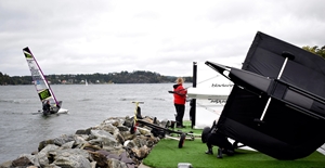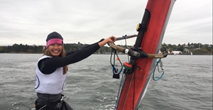En del seglare håller sig inte på land, trots att starten i Olympic Class Regatta är uppskjuten i väntan på vind. Fanny Baumann, elitseglare i klassen RS:X, gav sig ut på vattnet och tränade ändå.