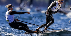 På VM i kanadensiska Halifax har den svenska besättningen Vilma Bobeck/Rebecca Netzler seglat upp i ledningen. Efter halva regattan leder det nykomponerade paret i den tuffa och jämna OS-klassen...